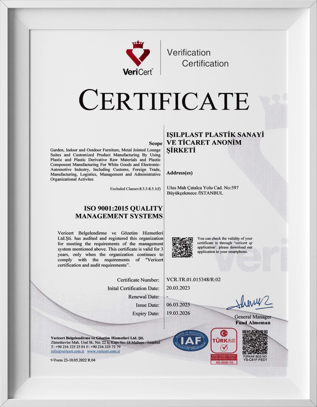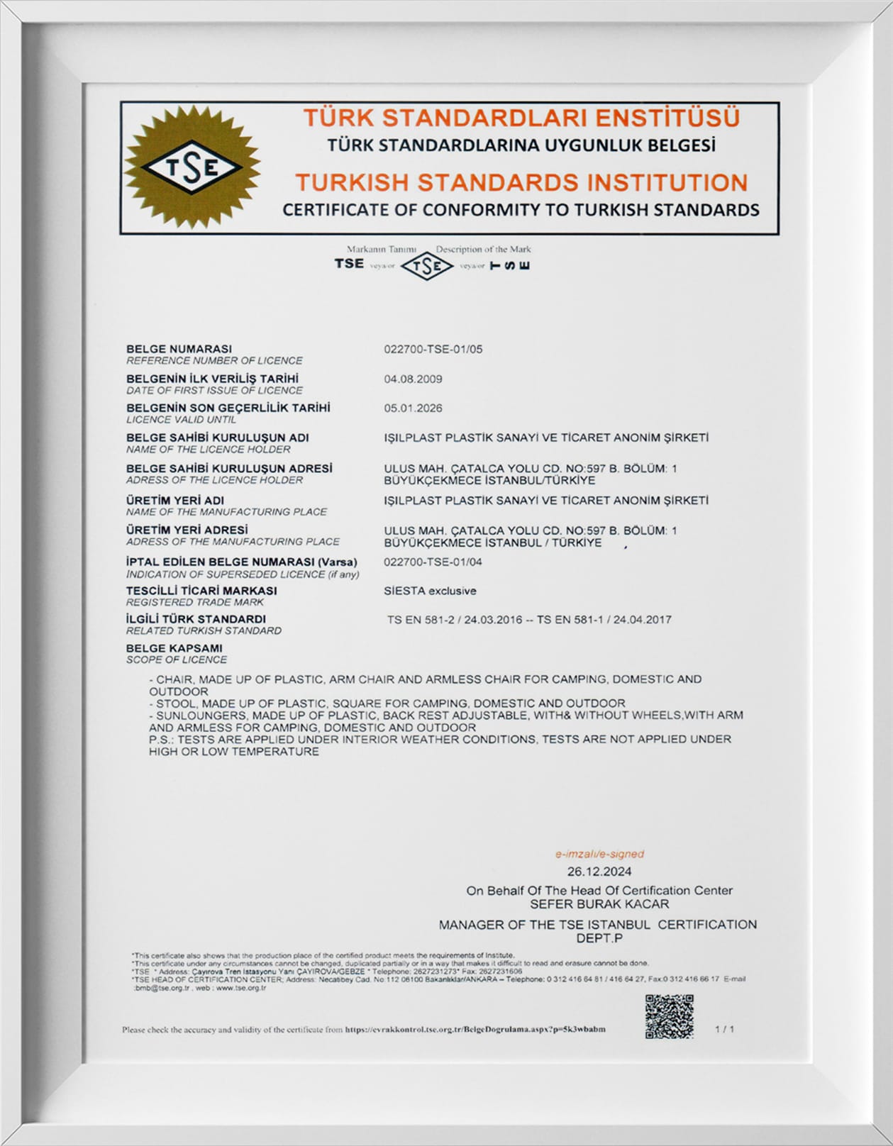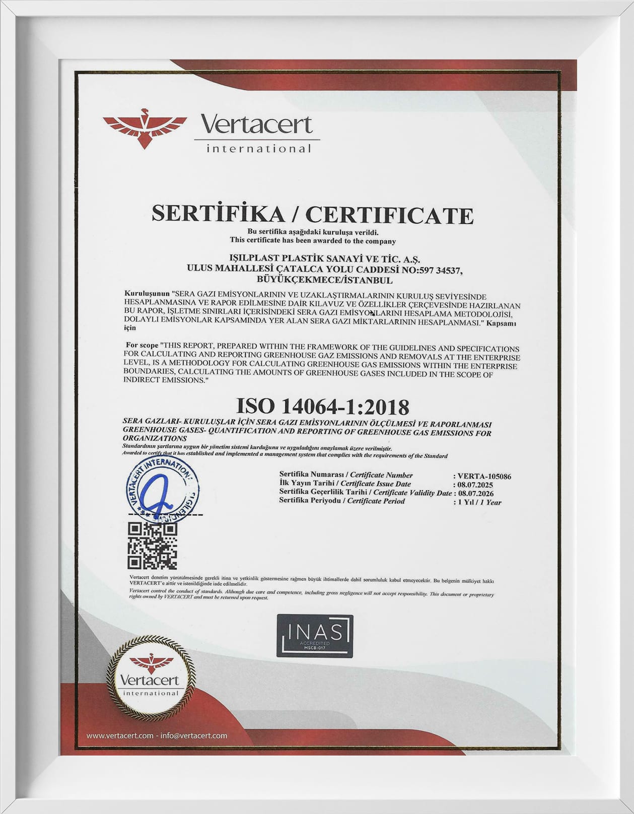 Thanks to our project “Assessment for Corporate Carbon Footprint”, we were entitled to receive a certificate according to ISO 14064-1:2018 standards. In the initial report, production related carbon footprint (CO2 Emissions) of Siesta was calculated. As Siesta Exclusive, with thorough analysis of this assessment, we are aiming at decreasing our CO2 emissions.